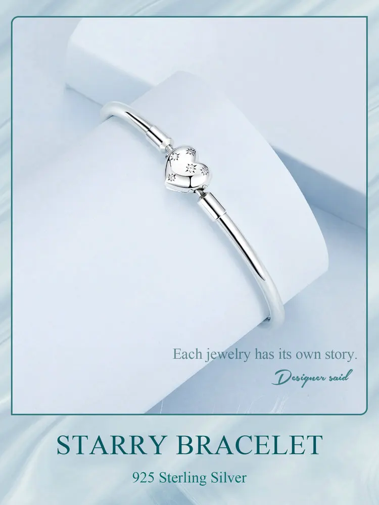 925 Sterling Silver Shiny Starry Bracelet Simple Basic Bangle Bracelet for Women Fine Jewelry 17CM 19CM