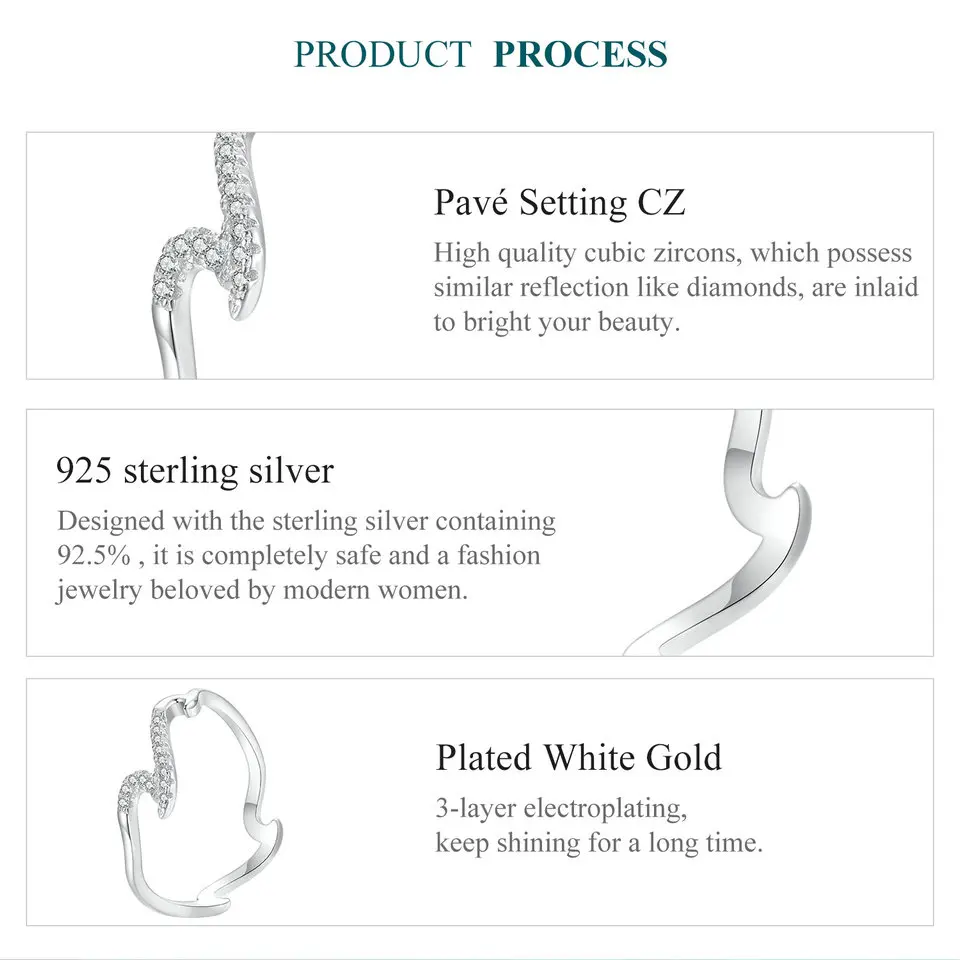 925 Sterling Silver Multiple Waves Band Ring, Stackable Engagement Wedding Ring Summer Jewelry Gift BSR587