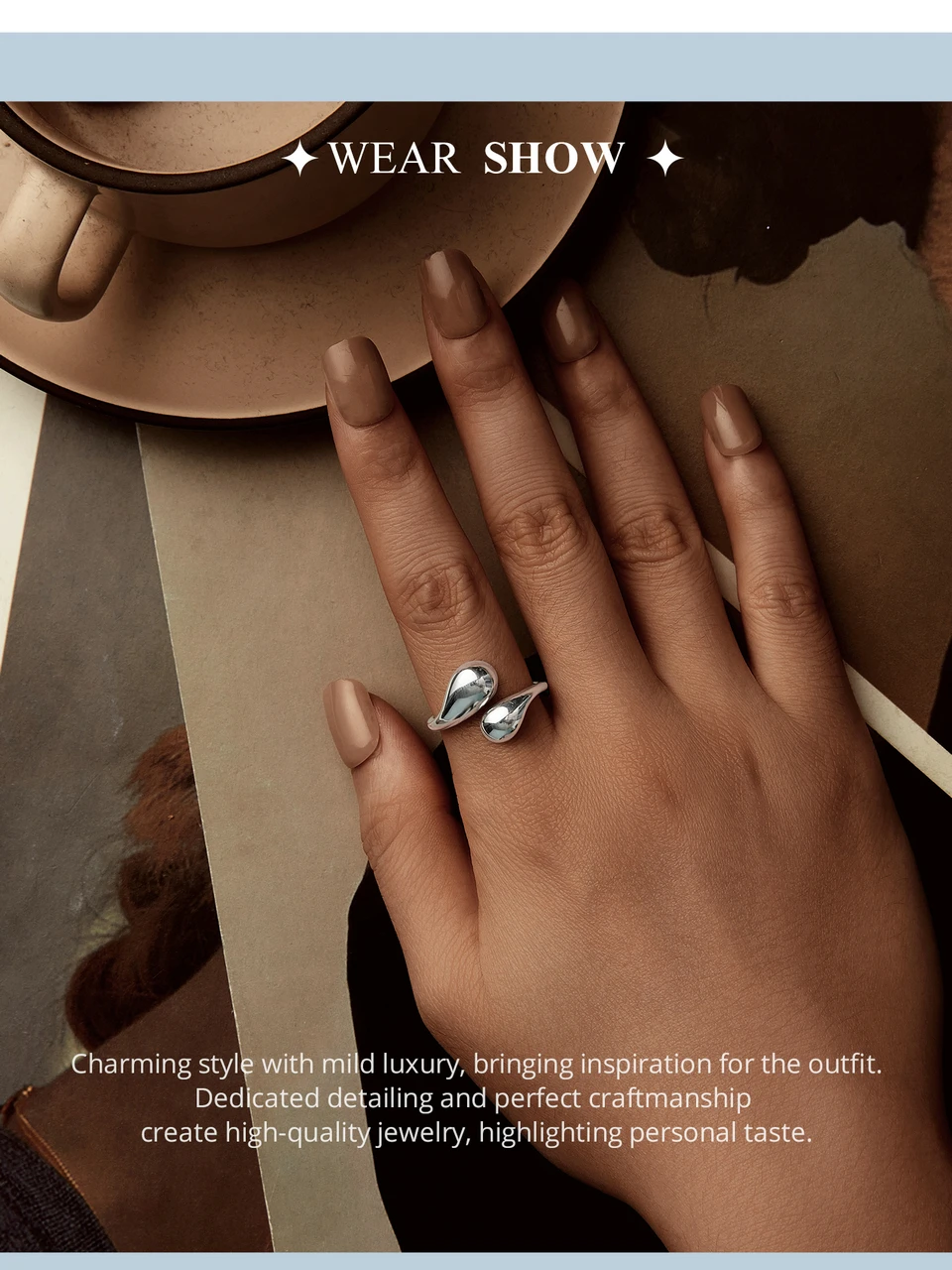 925 Sterling Silver Adjustable Water Droplet Rings Handmade High Polished Thumb Band Statement Ring for Women Girls