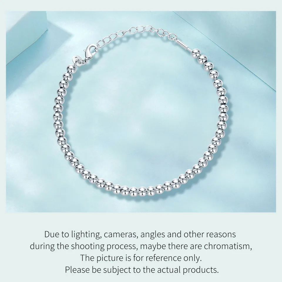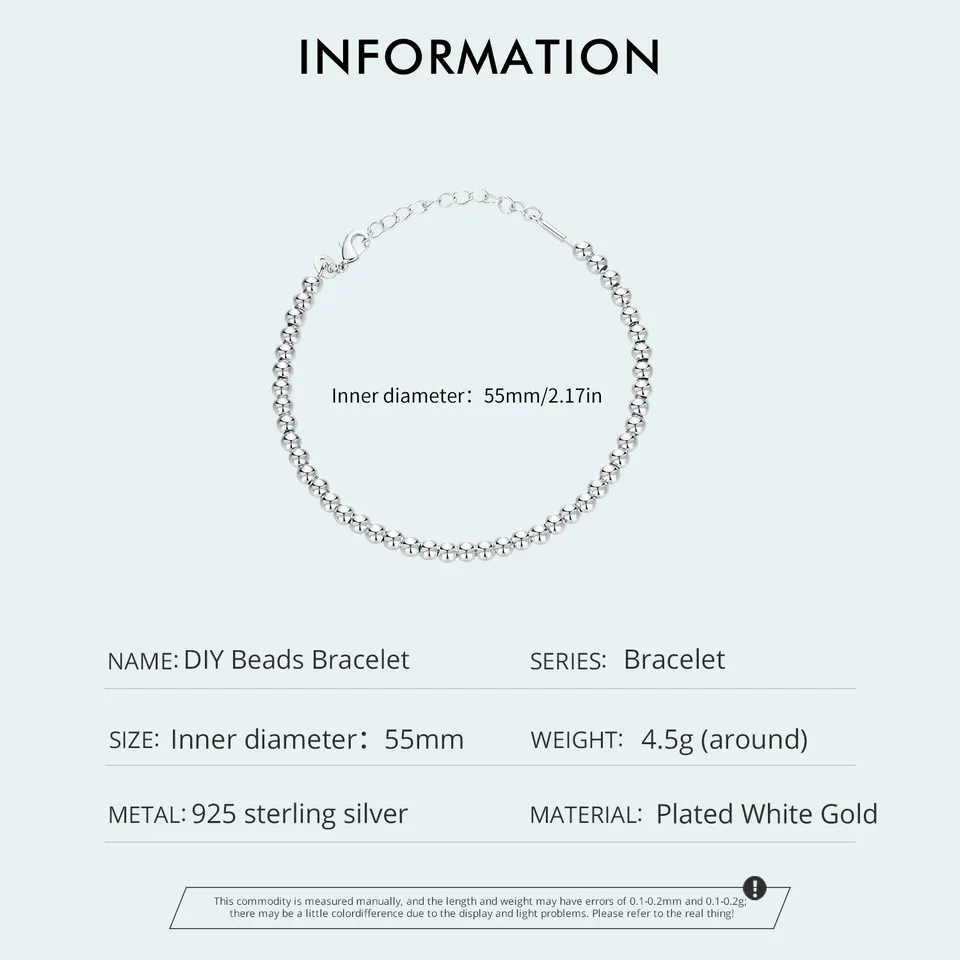 925 Sterling Silver Bead Bracelet for Women White Gold Plated Ball Bracelet Hypoallergenic Bohemian Stackable Bracelet