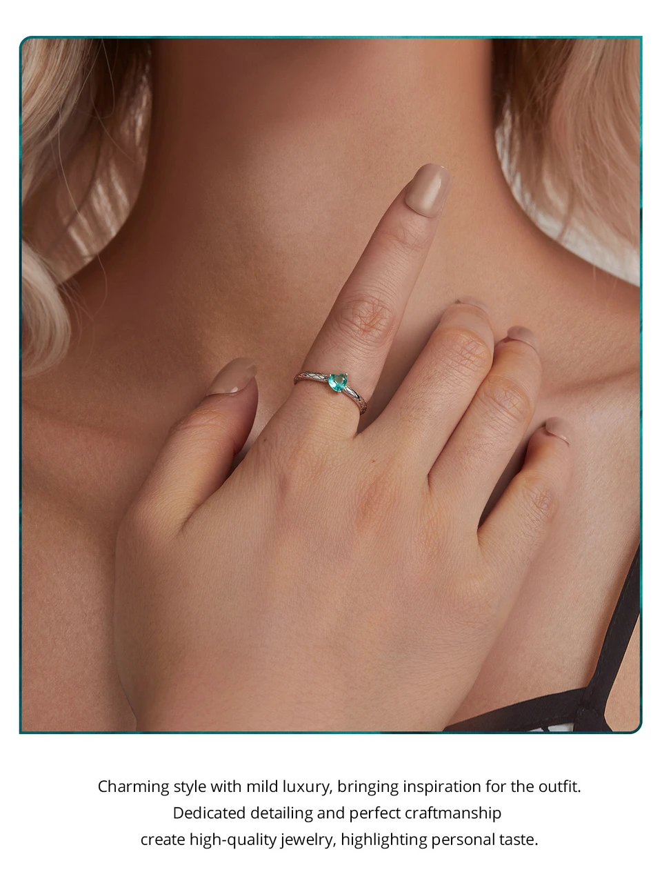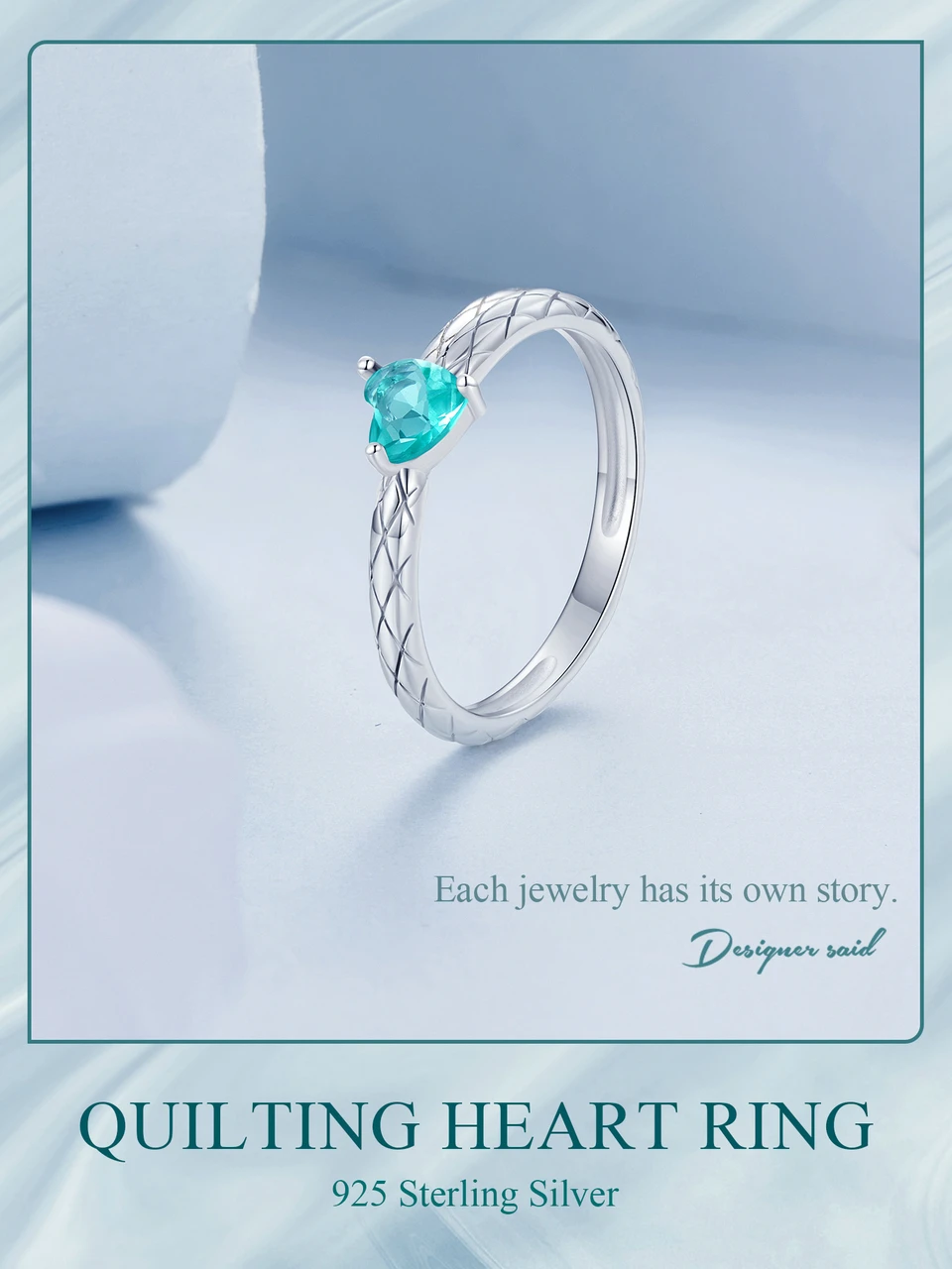 925 Sterling Silver Blue Heart-shaped Finger Ring Vintage Pattern Friendship Ring for Women Statement Ring Jewelry Gift
