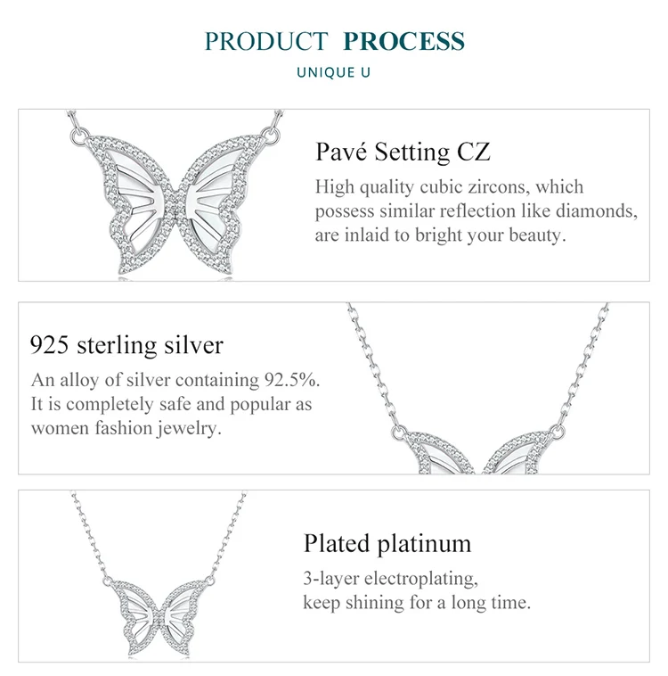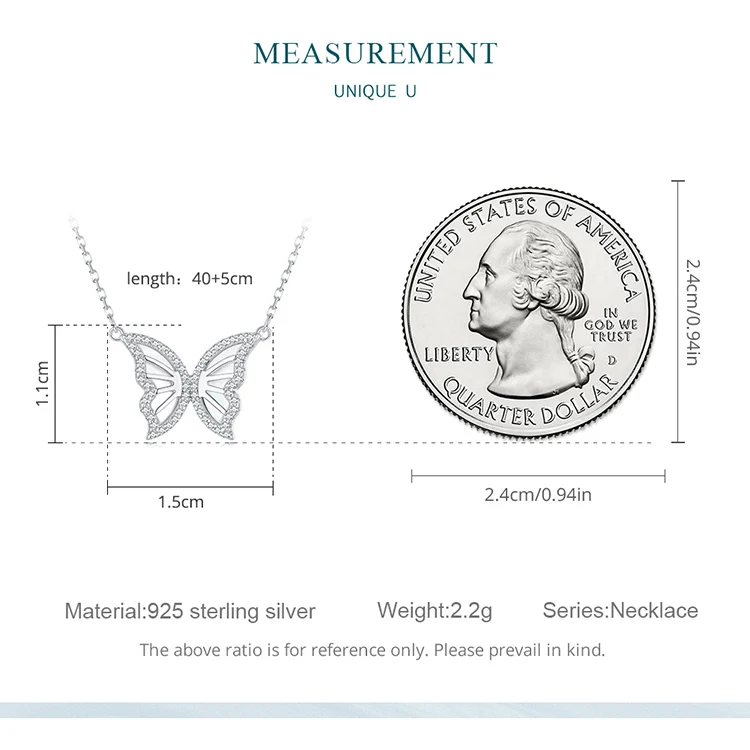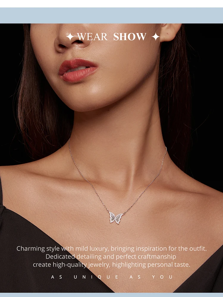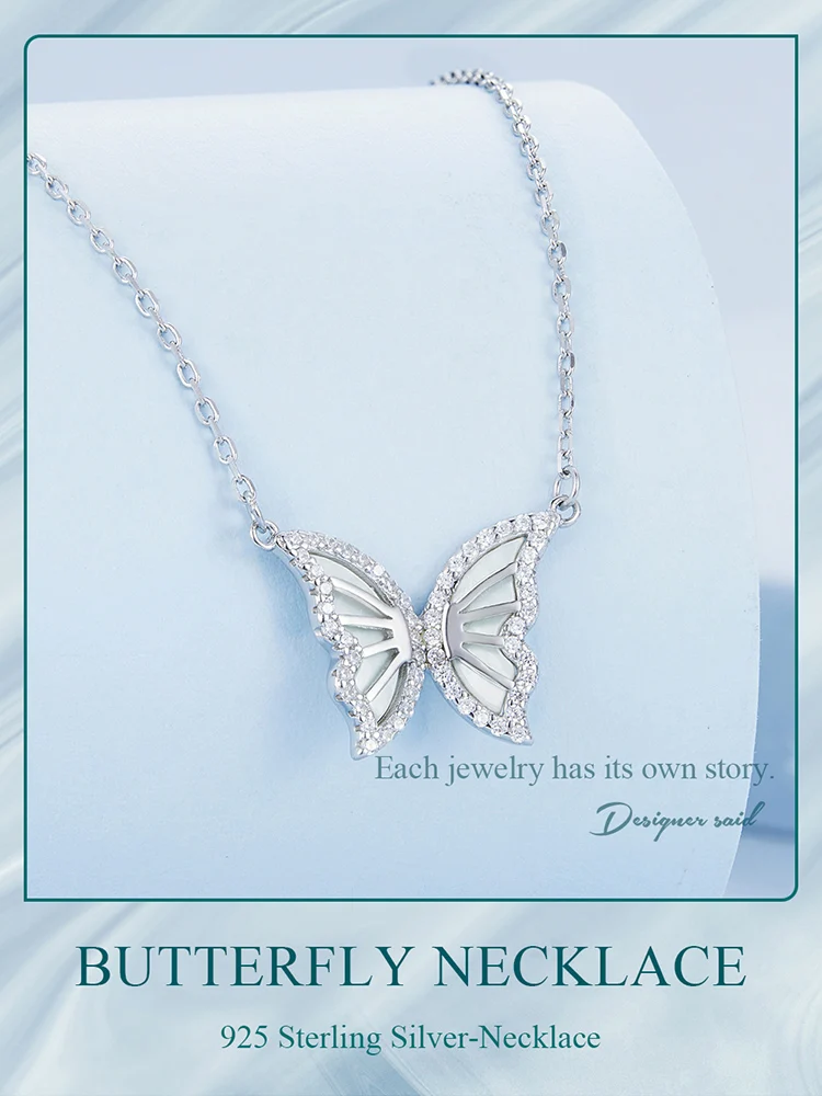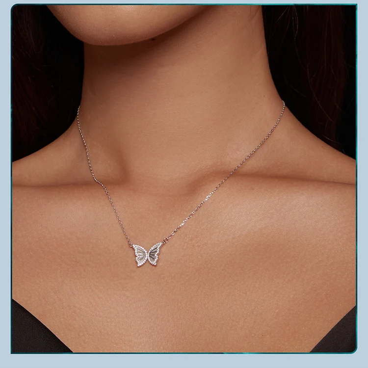 925 Sterling Silver Butterfly Pendant Necklace for Women Birthday Christmas Gift Pave Setting CZ Fine Jewelry BSN293