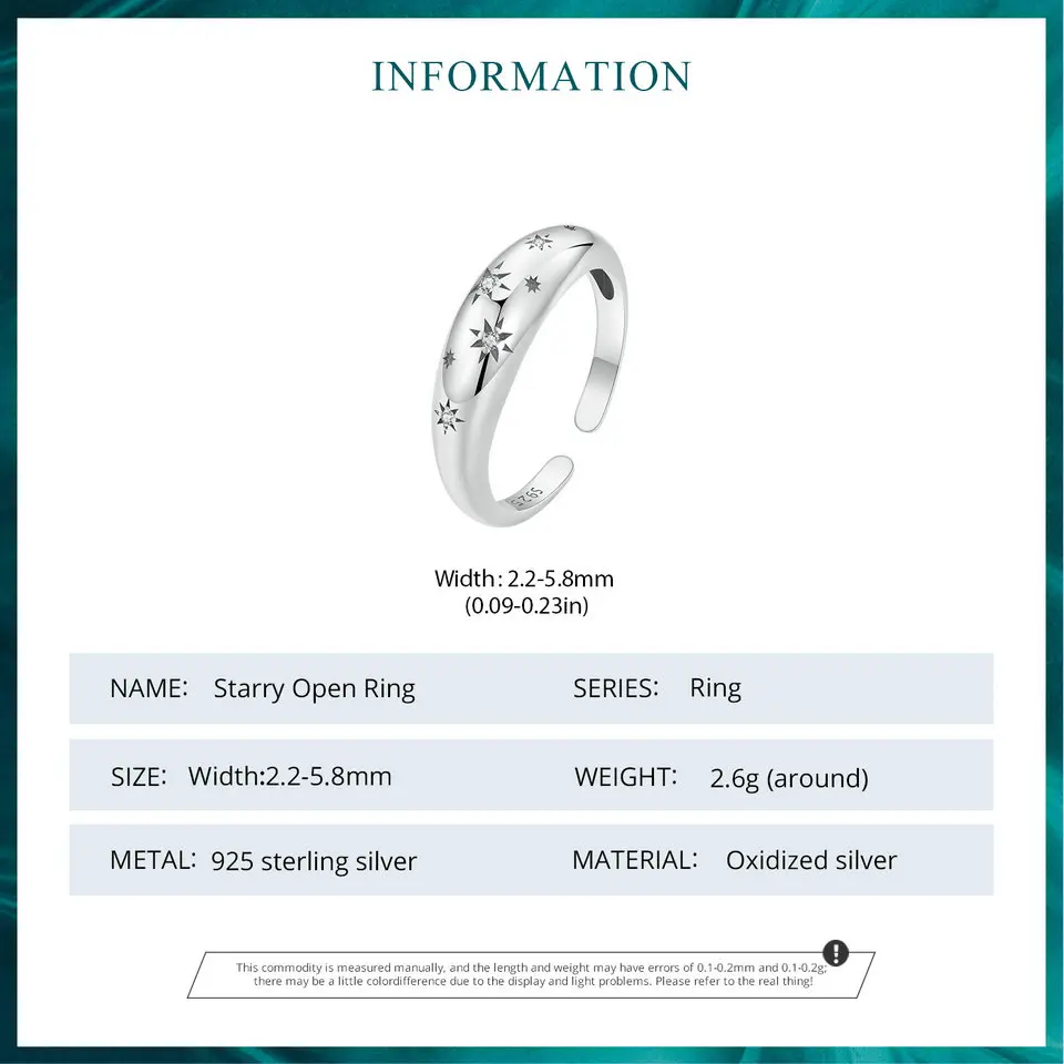 925 Sterling Silver Chunky Rings for Women Starry Adjustable Bold Thick Statement Rings for Women Minimalist Rings