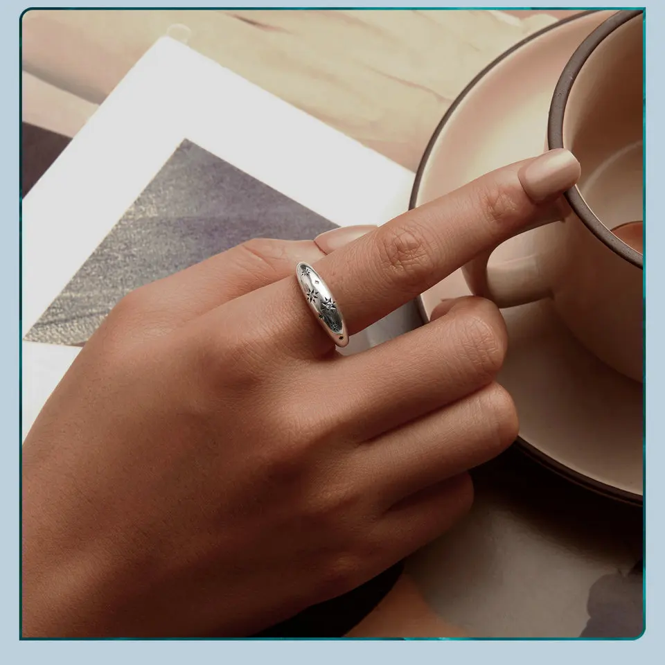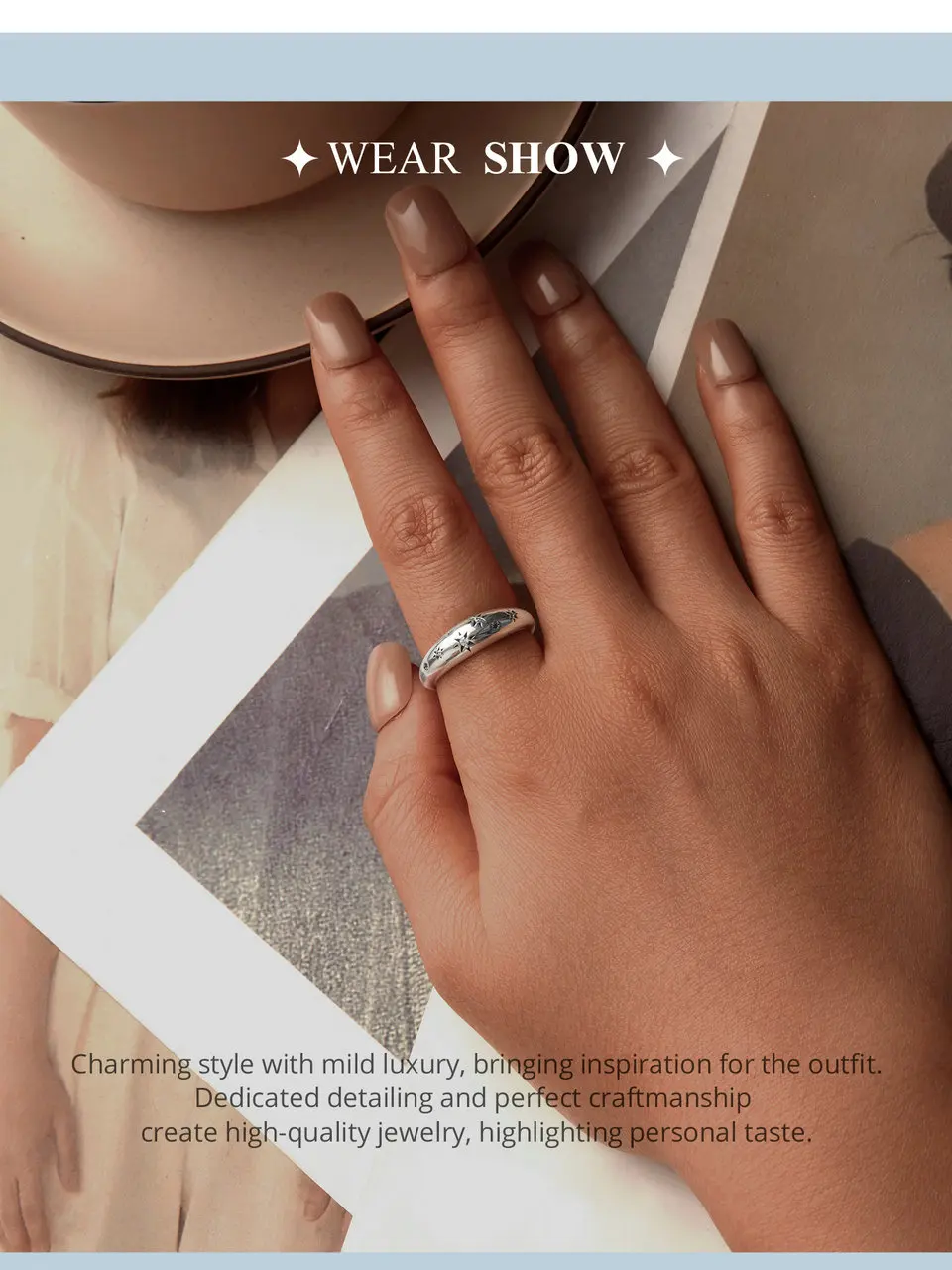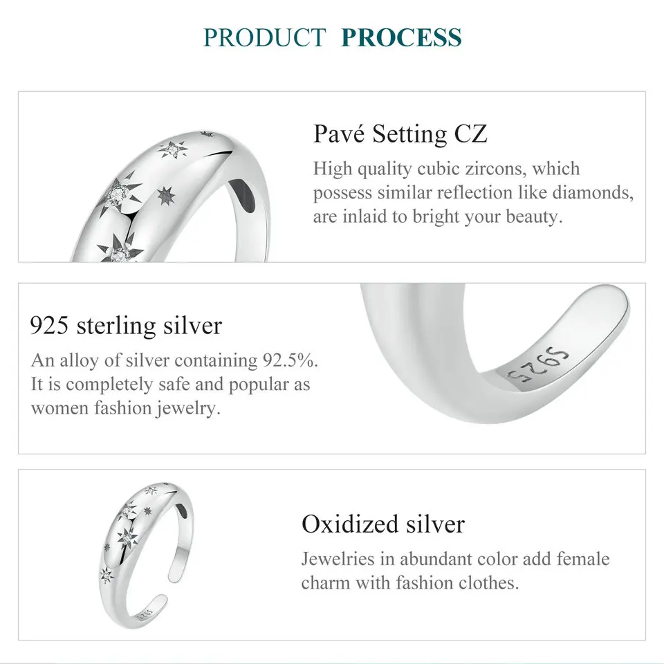 ❤ 【Description】The design inspiration for the starry ring comes from the stars in the natural world presenting a mysterious and dreamy feeling. Its simple and elegant style is more suitable for everyday wear.