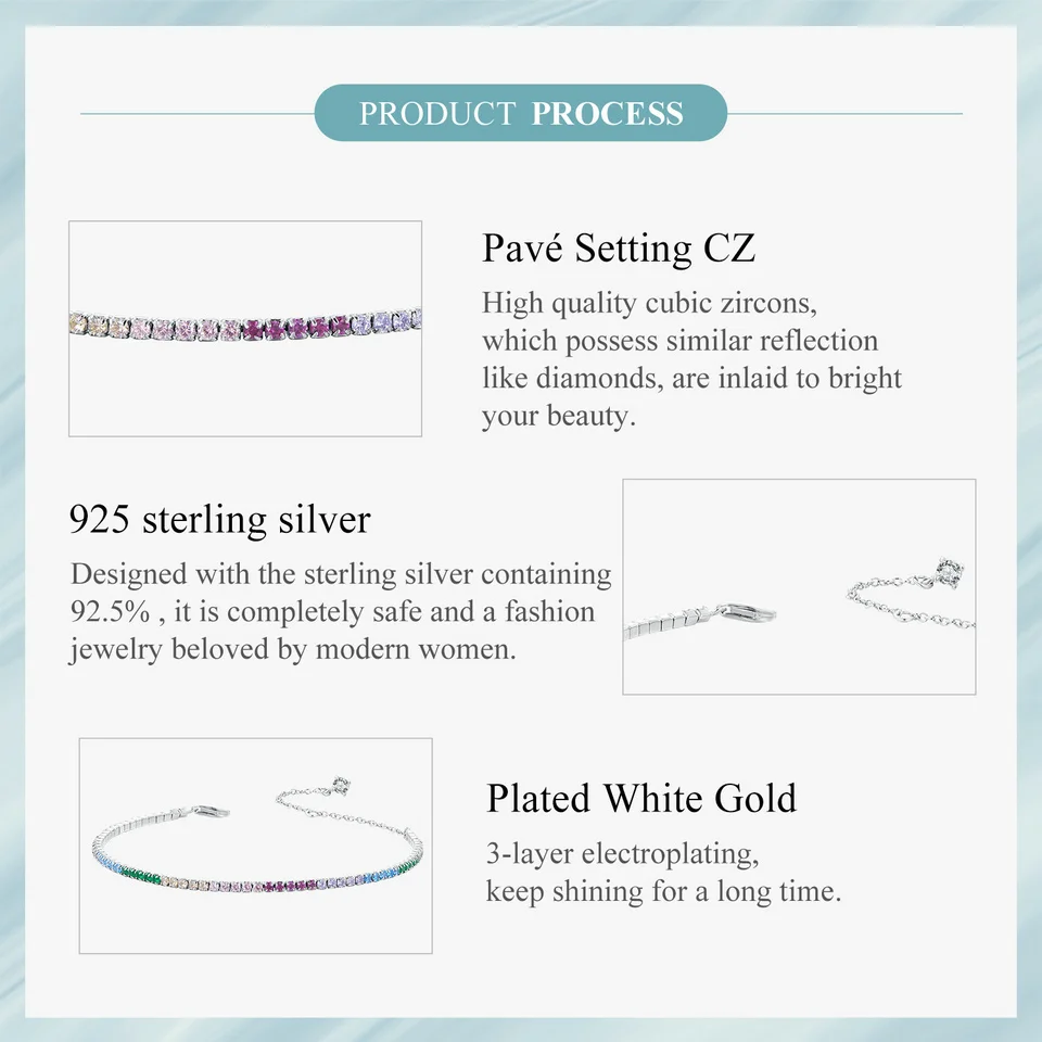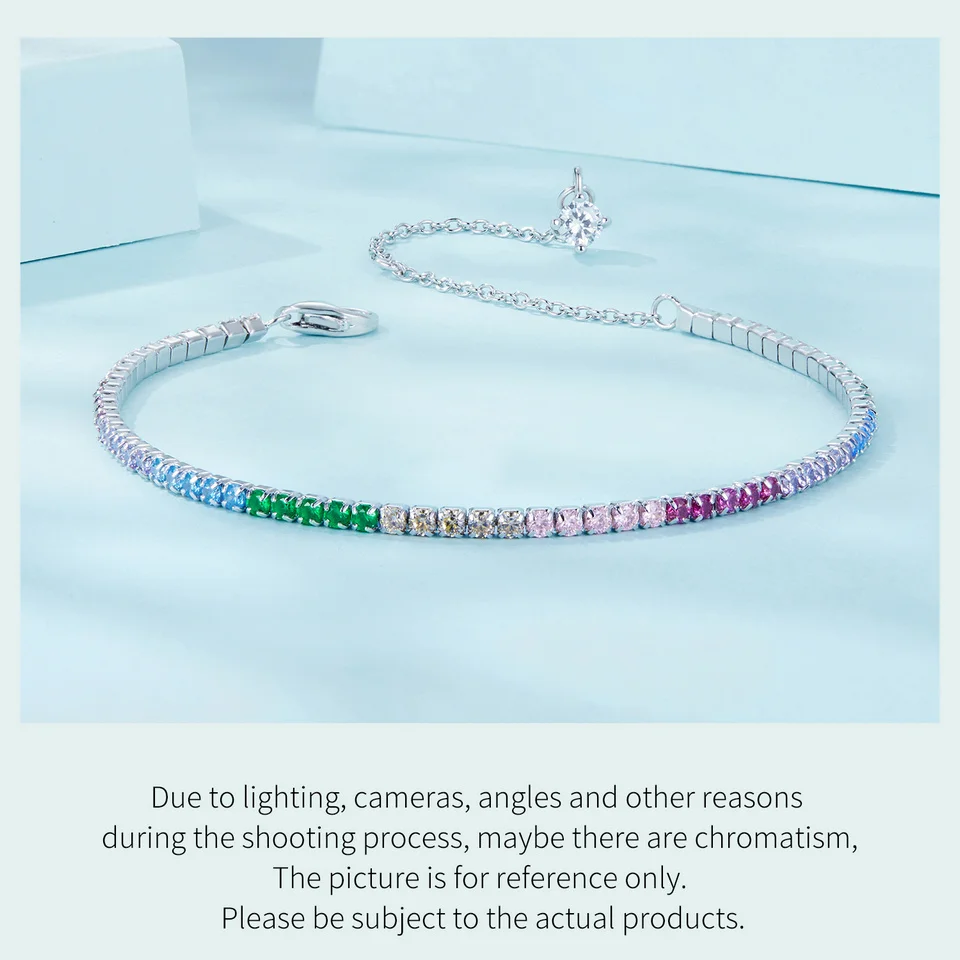 925 Sterling Silver Classic Tennis Bracelets, Rainbow Cubic Zirconia Tennis Bracelet Fashion Jewelry Gifts for Women