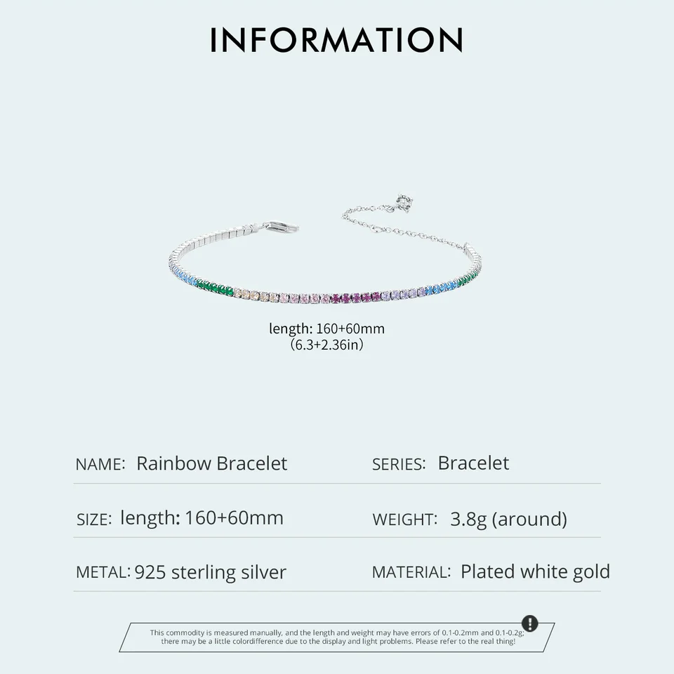 ❤ [Description] The colorful cubic zirconia stones on the bracelet resembling a vibrant rainbow showcase the beauty of life and vitality to feel the joy of colors and the beauty of life. Each colored-changing cubic zirconia stone in the bracelet represents different changes and emotions to convey love for life and longing for a colorful world through the bracelet, which help wearers to experience the wonders of light and color.
