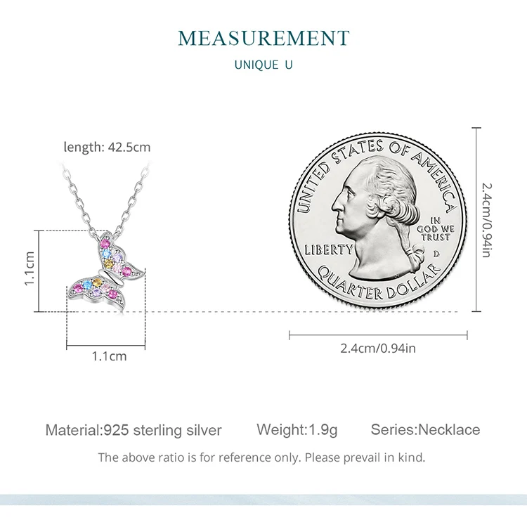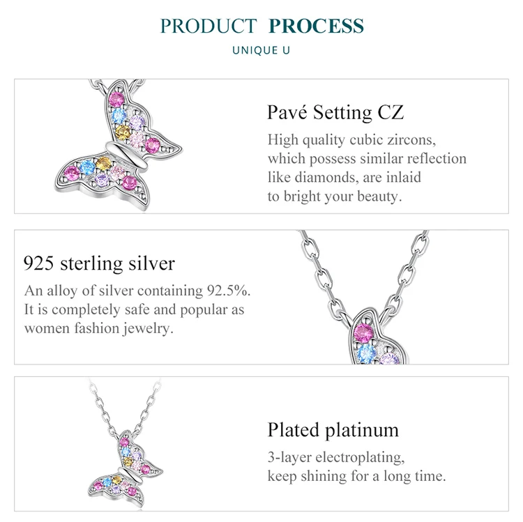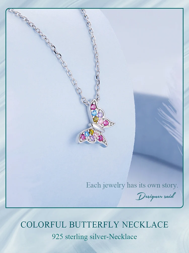 ❤ [Description] The designer takes thew butterfly as the creative element of the necklace. The wings of butterflies are full of colorful zircons, just like chromatic dreams, giving people magical reverie.