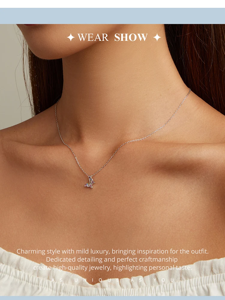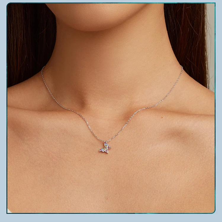 925 Sterling Silver Colorful Butterfly Necklace for Women Rainbow Gemstone Butterfly Link Chain Party Gift Jewelry BSN261