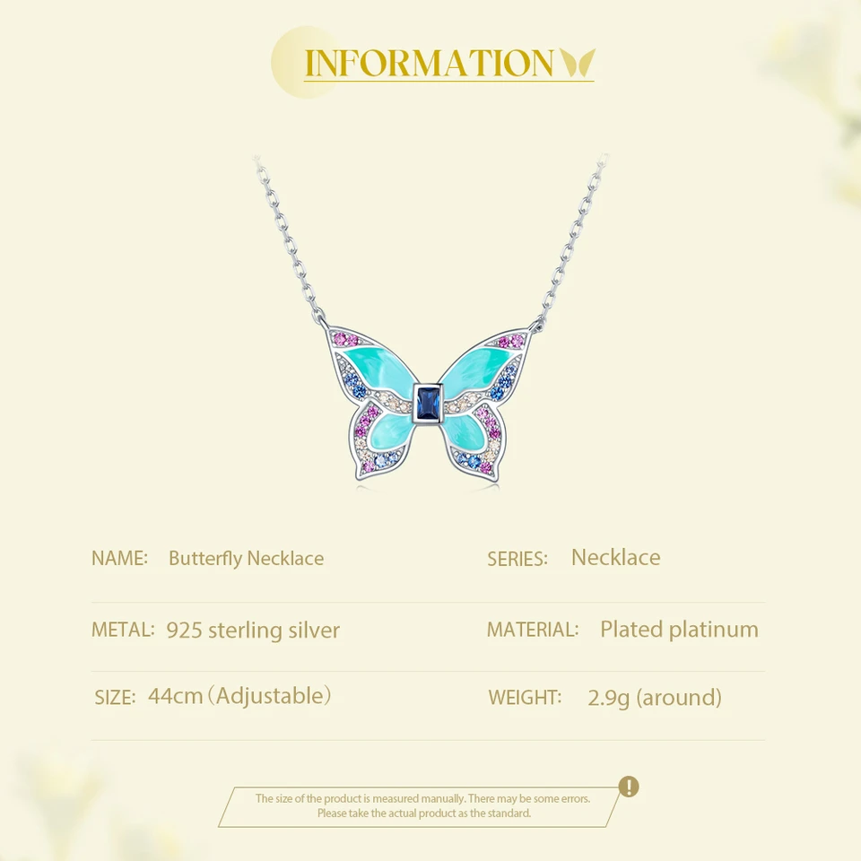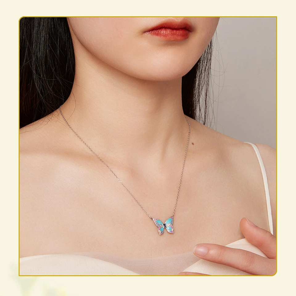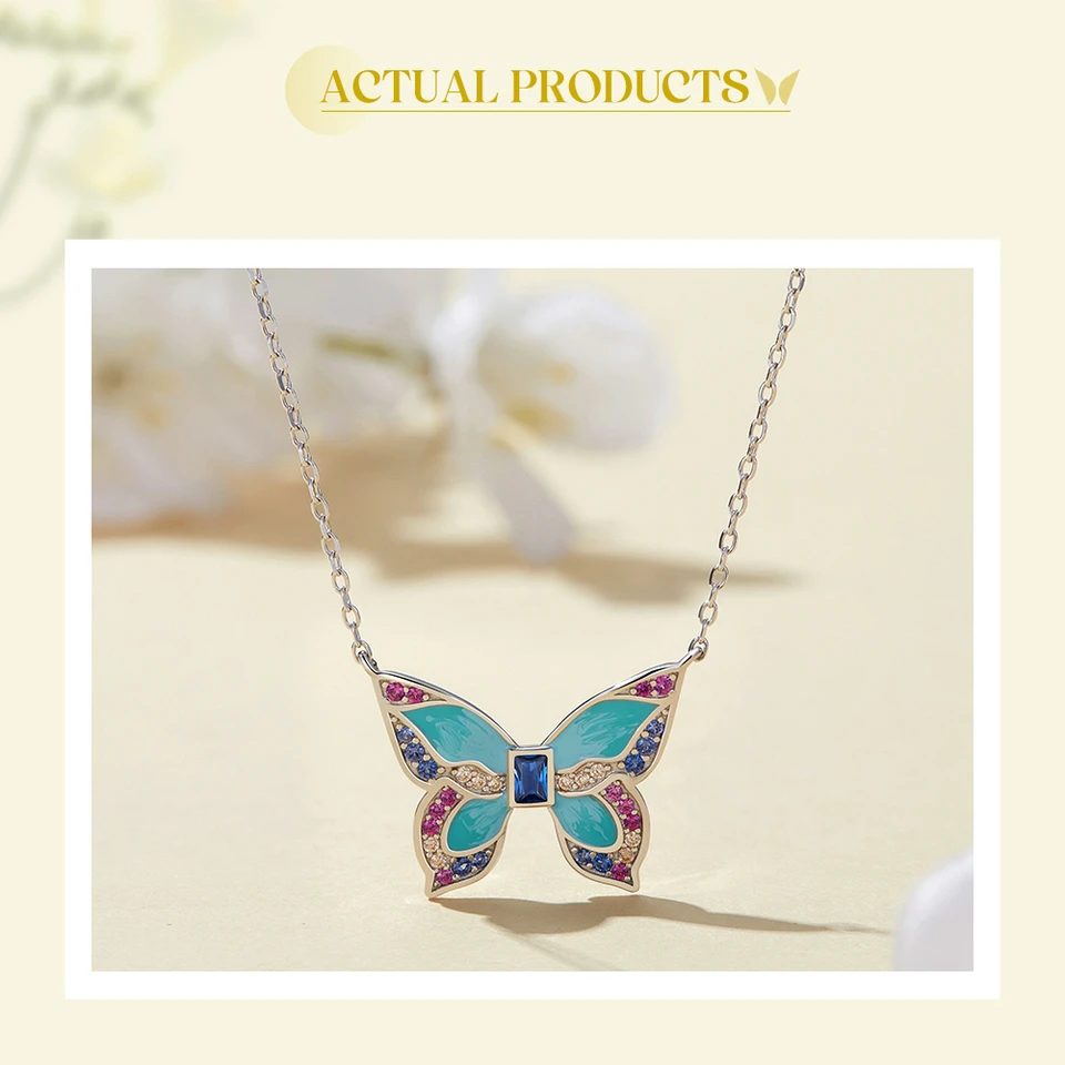 925 Sterling Silver Colorful Butterfly Pendant Necklace Insect Neck Chain for Women Birthday Gift Fine Jewelry BSN306
