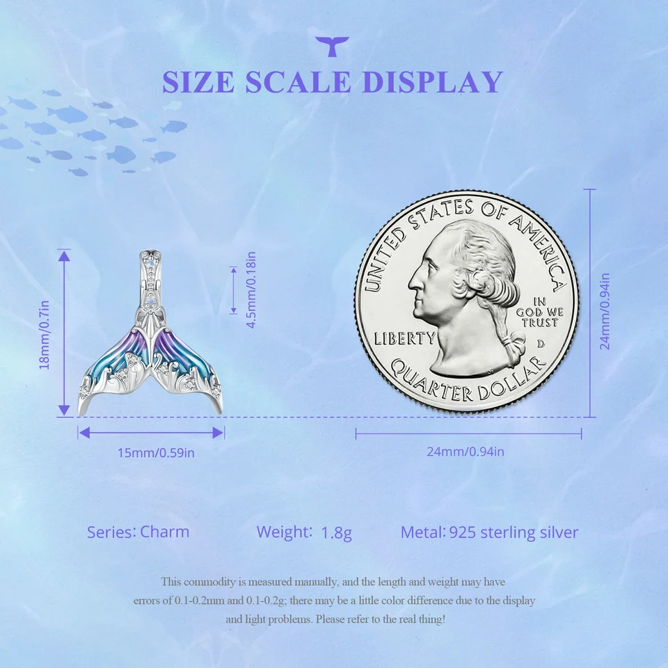 925 Sterling Silver Colorful Enamel Mermaid Tail Pendant Necklace Dainty Neck Chain for Women Valentine's Day Gift
