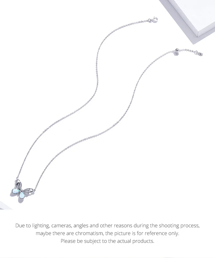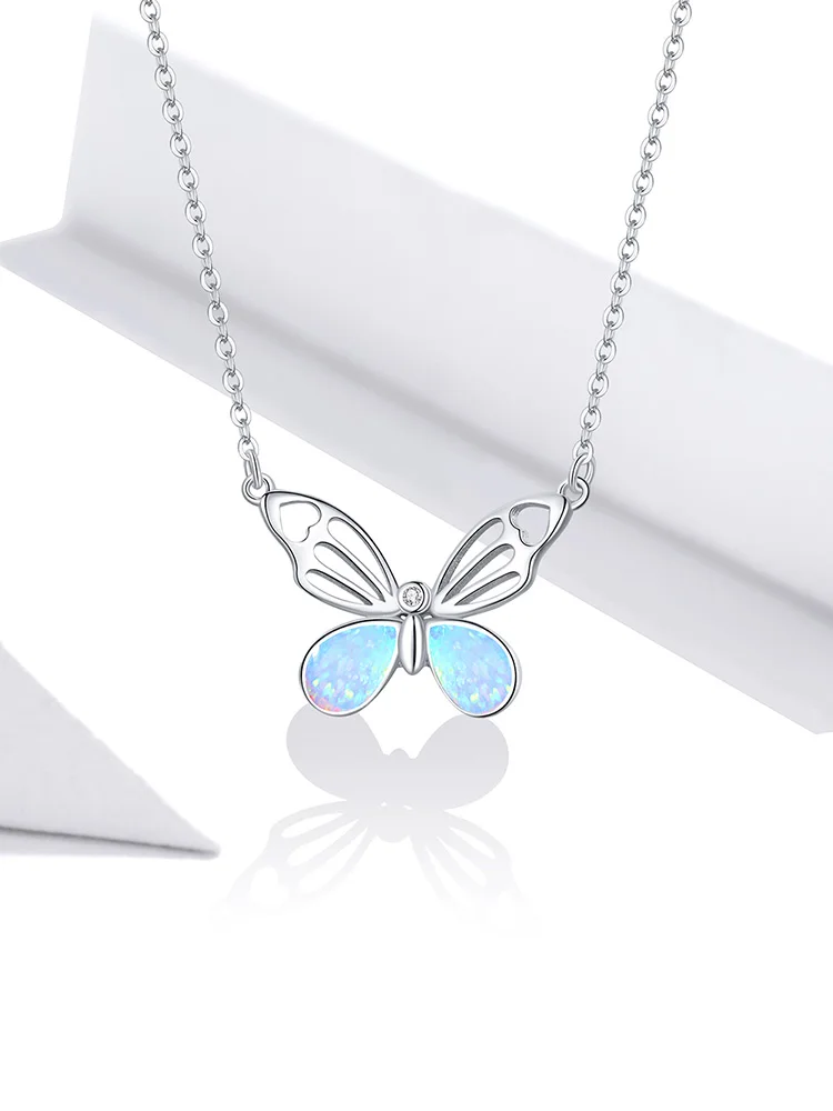 925 Sterling Silver Colorful Opal Butterfly Pendant Necklace Hollow Pattern Insect Neck Chain Women Fine Jewelry BSN216