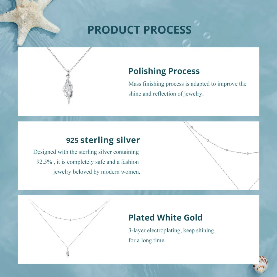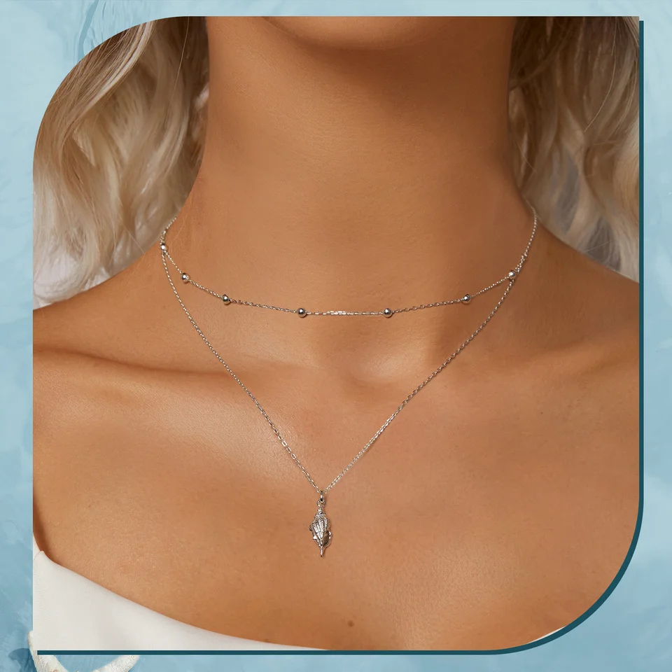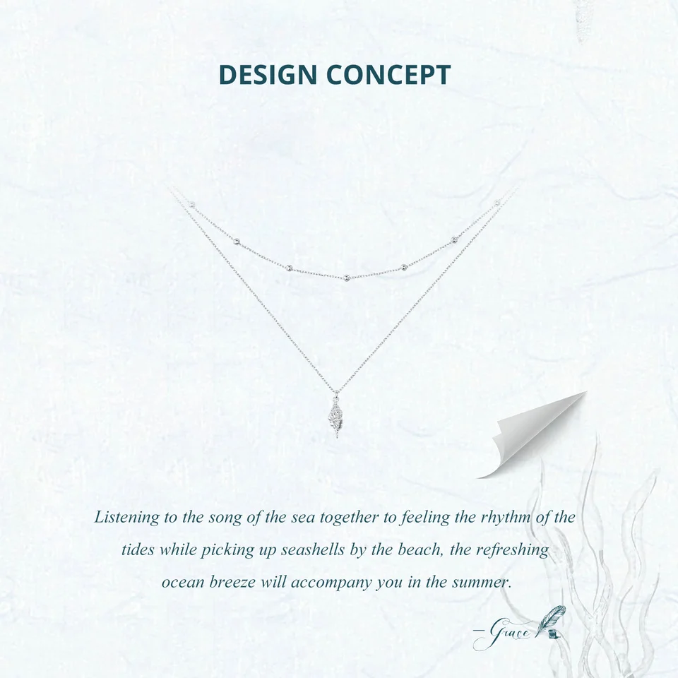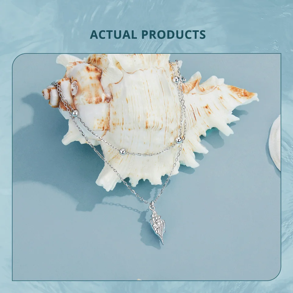 925 Sterling Silver Conch Layered Pendant Necklace Multilayer Stylish Choker Necklace for Women Ocean Series Jewelry