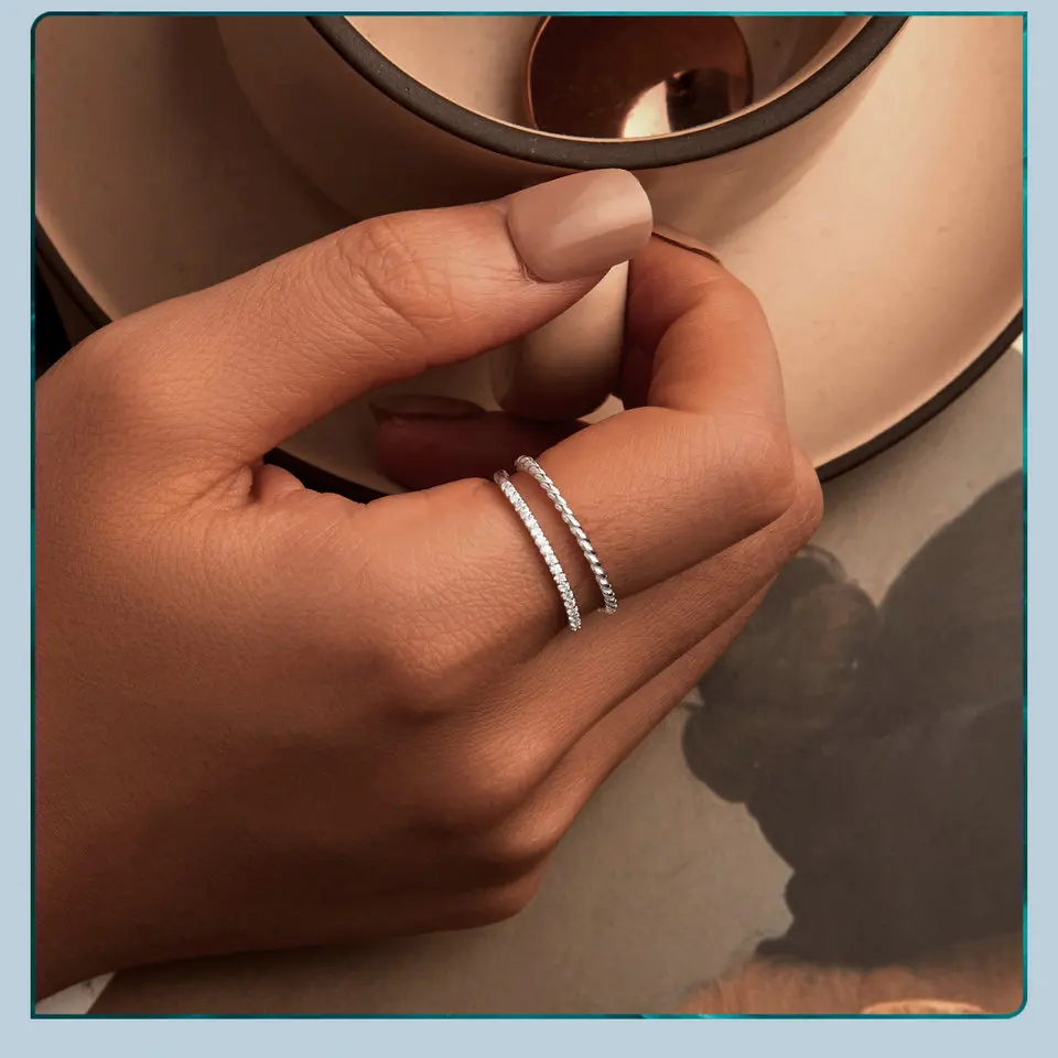 925 Sterling Silver Cubic Zirconia Dual Stacking Rings | White Gold Plated Eternity Band for Women BSR541