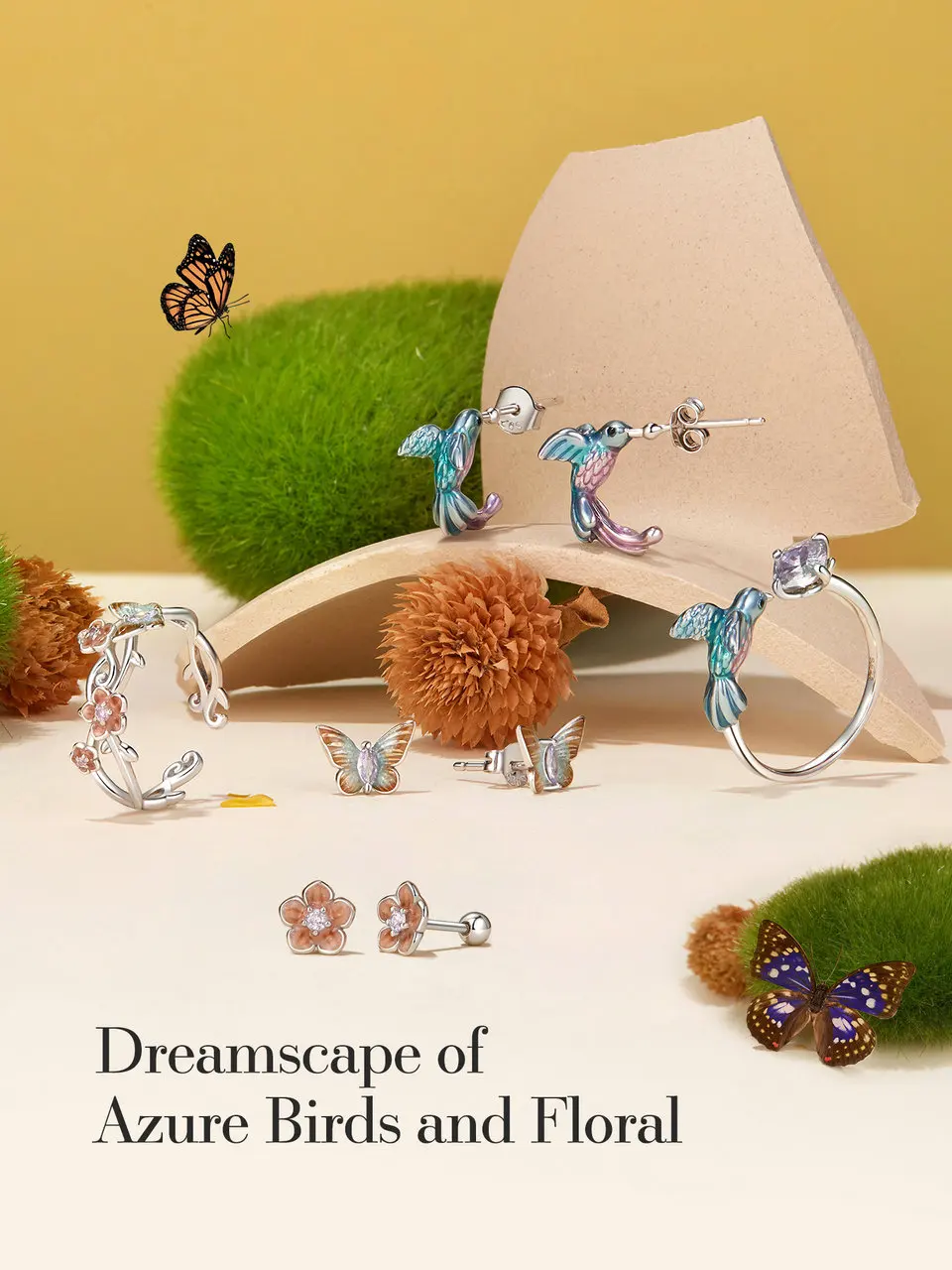 925 Sterling Silver Cute Bird/Cherry/Butterfly Ring/Earrings for Women Teen Girls Hypoallergenic Animal Fashion Jewelry