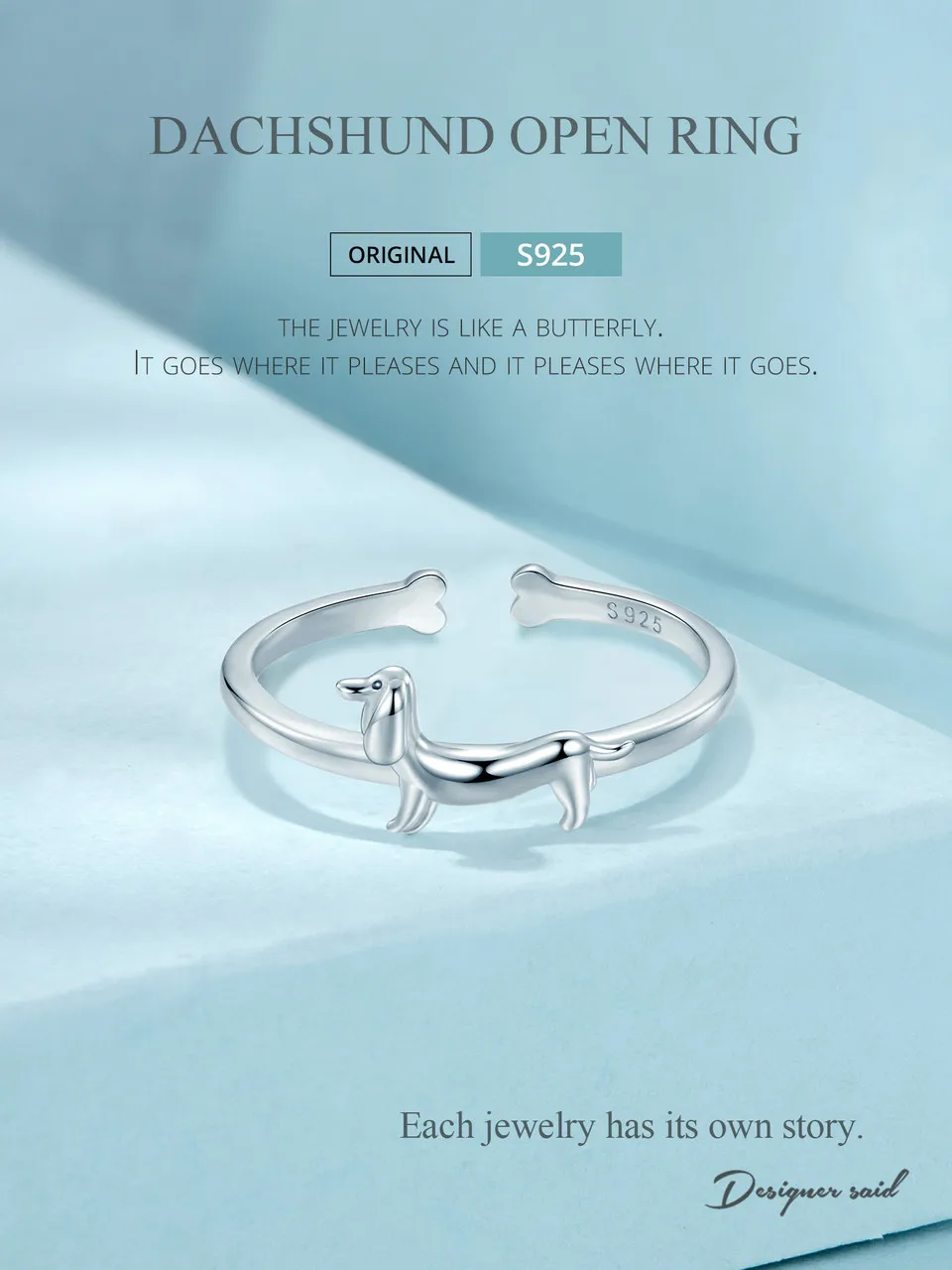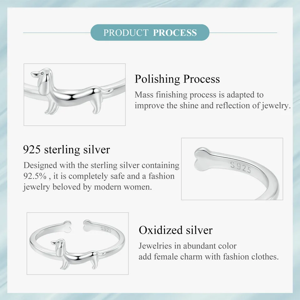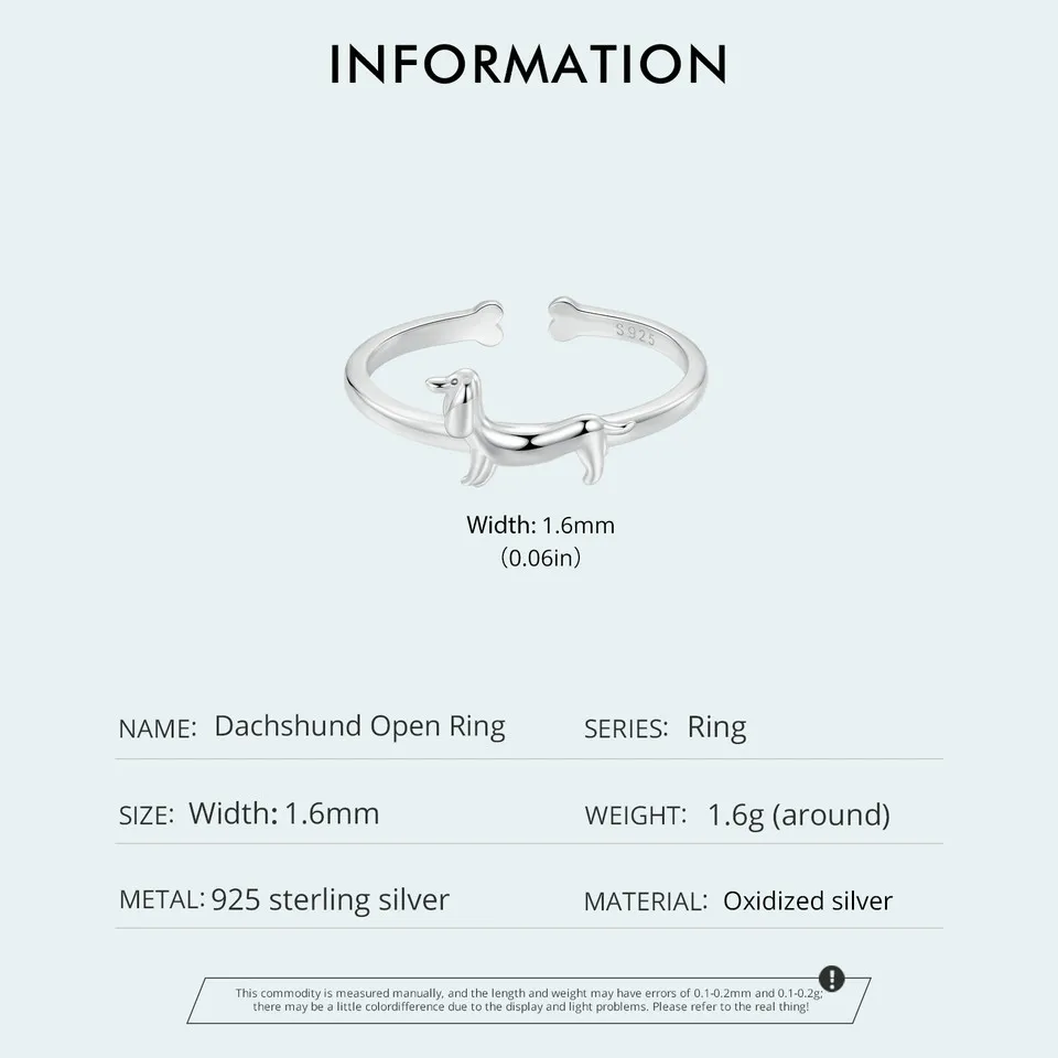925 Sterling Silver Cute Dachshund Ring for Women, Lovely Pet Dog Open Ring Statement Ring Jewelry Gift for Pet Lover