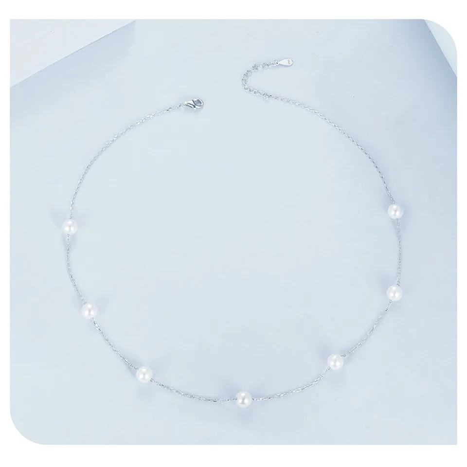 925 Sterling Silver Dainty Shell Pearl Choker Necklace, White Gold Plated Pearl Charm Necklaces Jewelry Gifts for Women