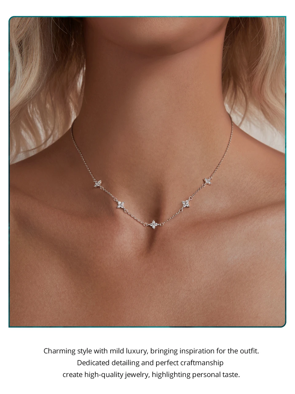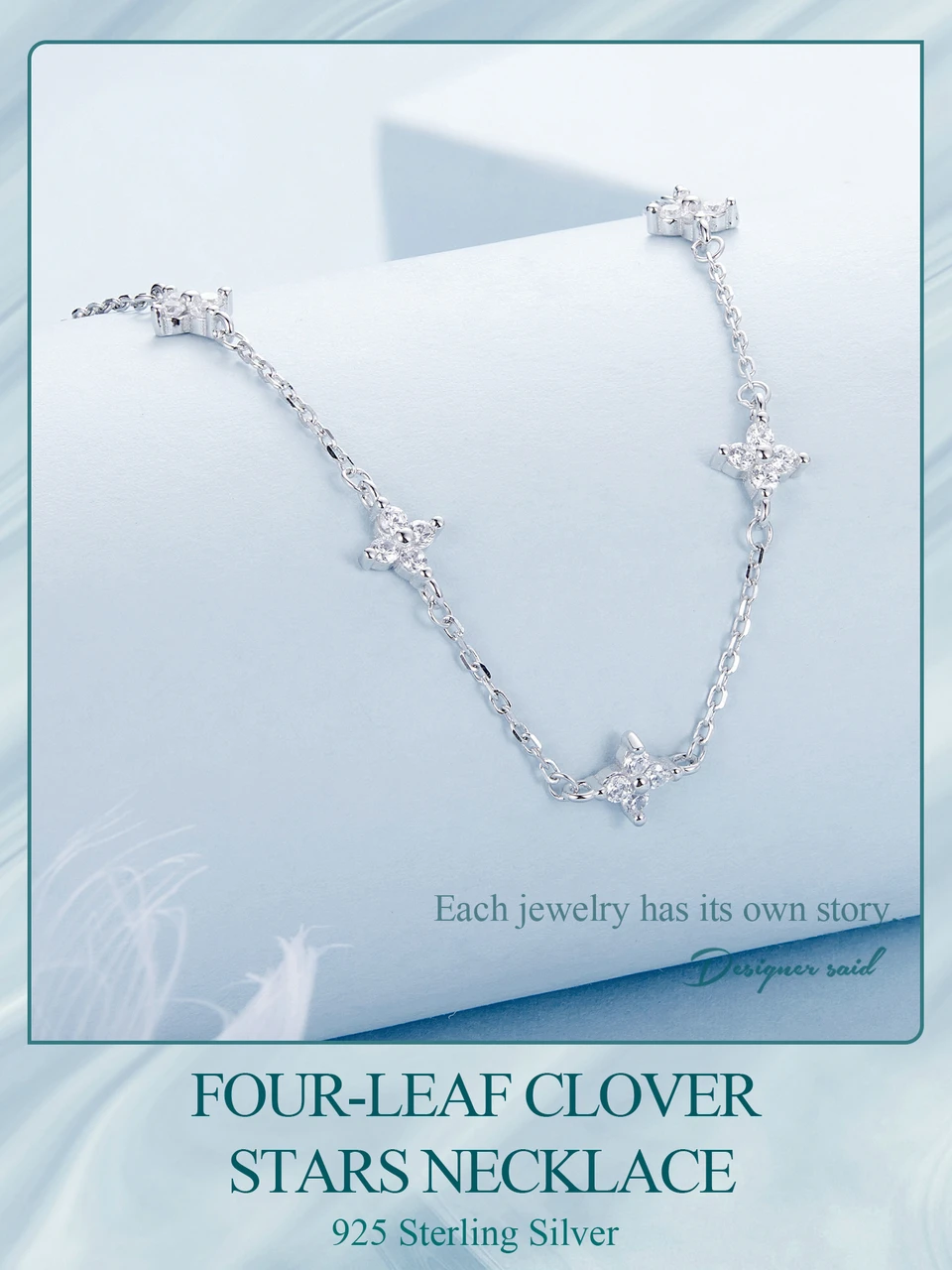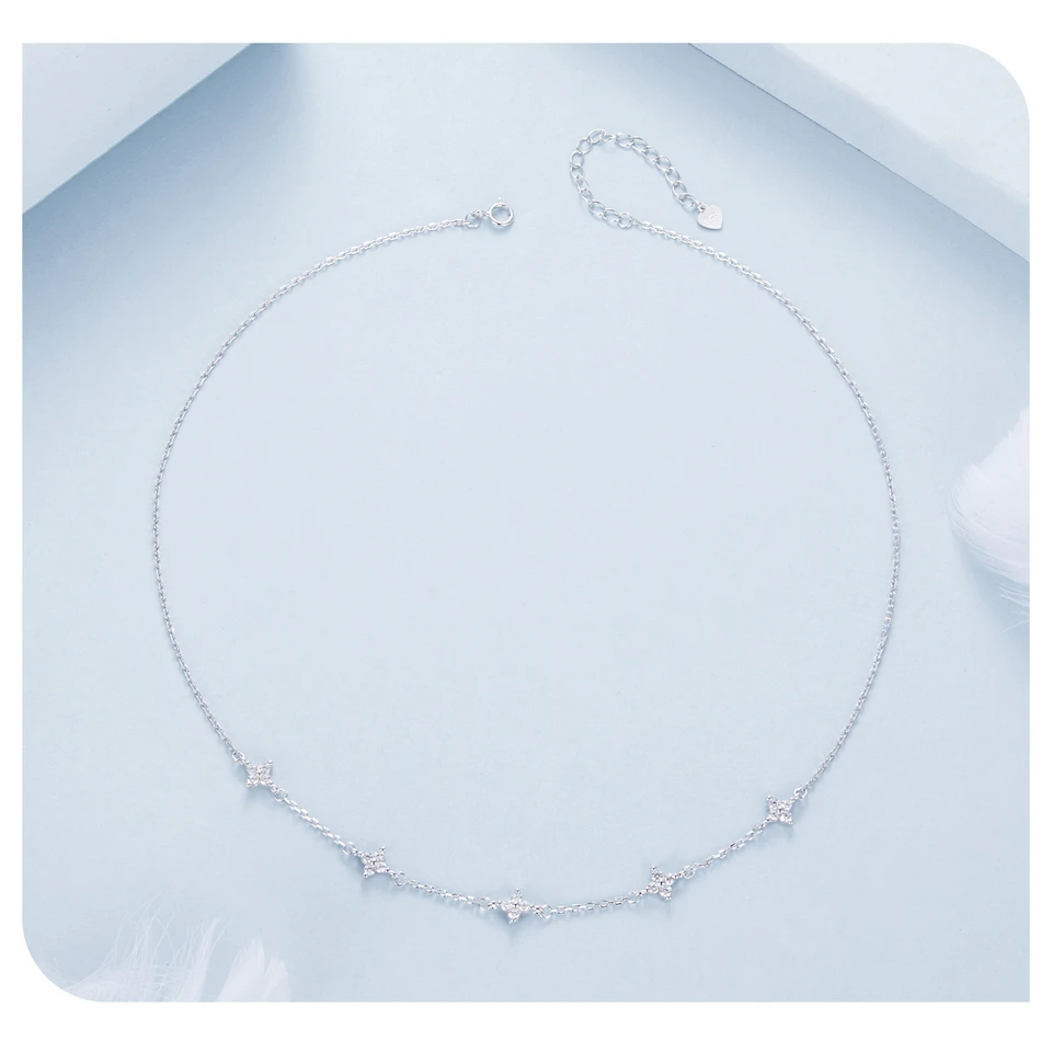 925 Sterling Silver Dainty Stars Necklace for Women, Four-Leaf Clover CZ Choker Chain Necklace Trendy Jewelry Gift BSN394