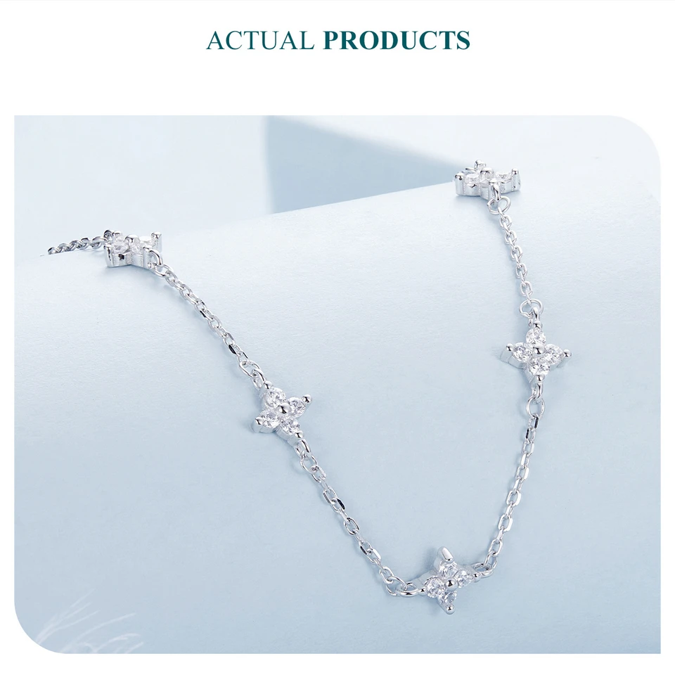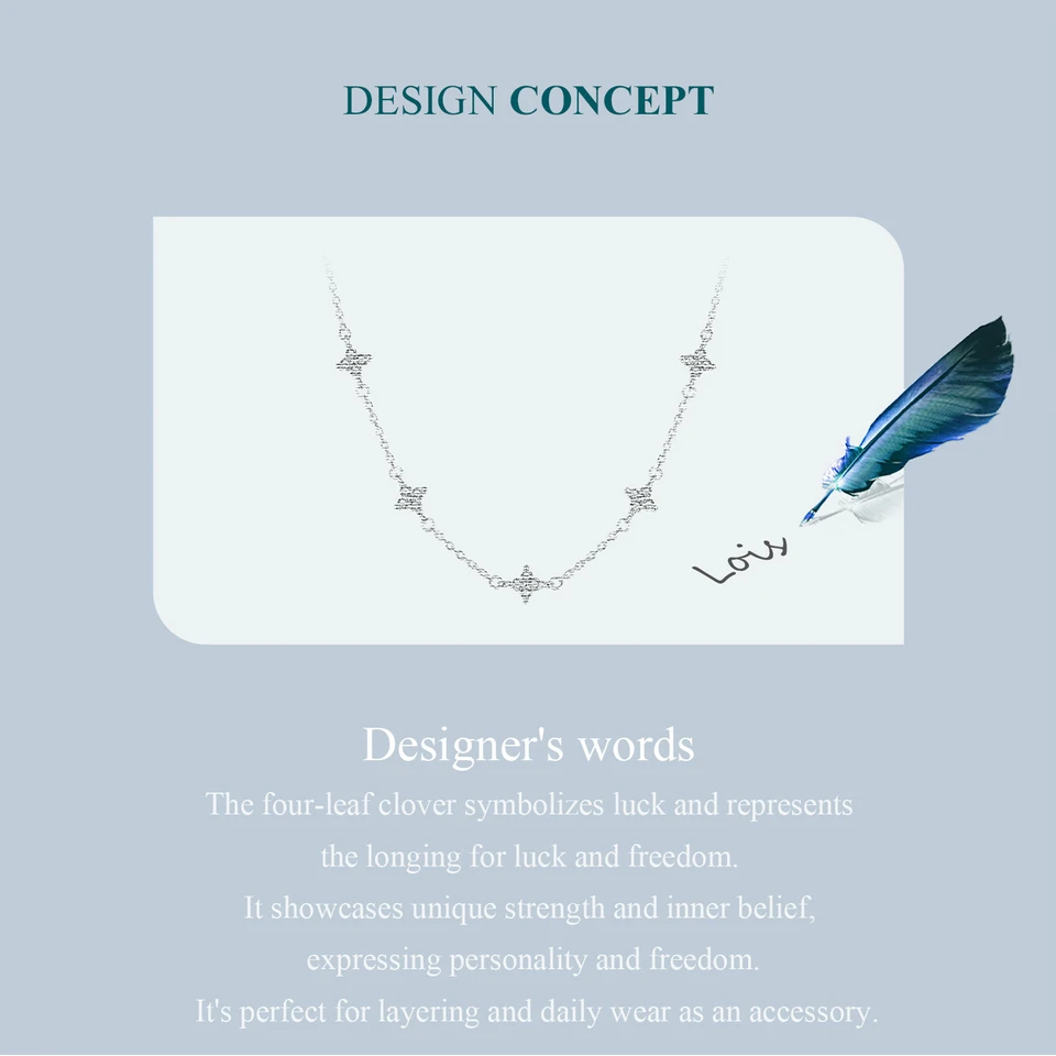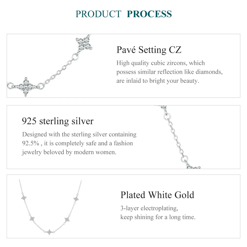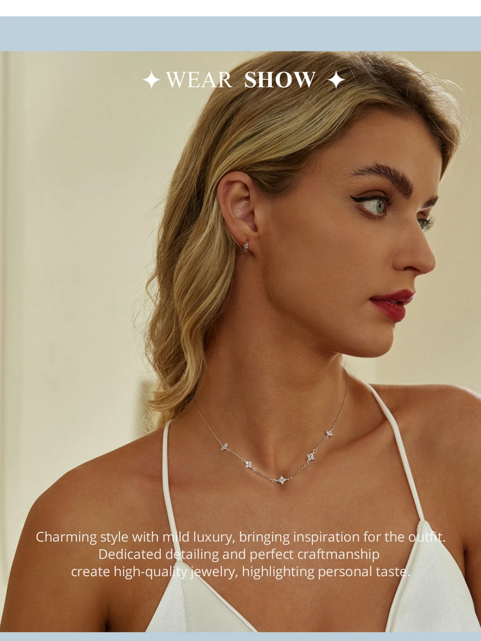 925 Sterling Silver Dainty Stars Necklace for Women, Four-Leaf Clover CZ Choker Chain Necklace Trendy Jewelry Gift BSN394