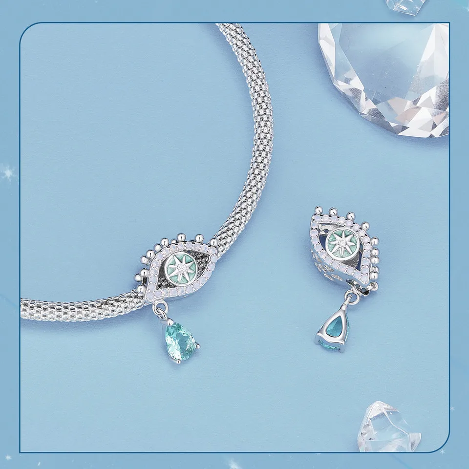 925 Sterling Silver Demon's Eye Pendant Necklace Lucky Evil Eye Neck Chain Pave Setting CZ for Women Valentine's Day Gift