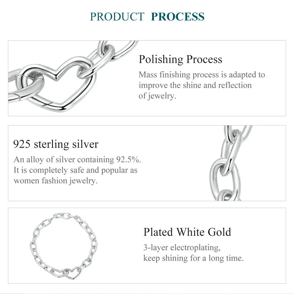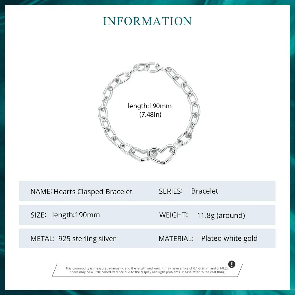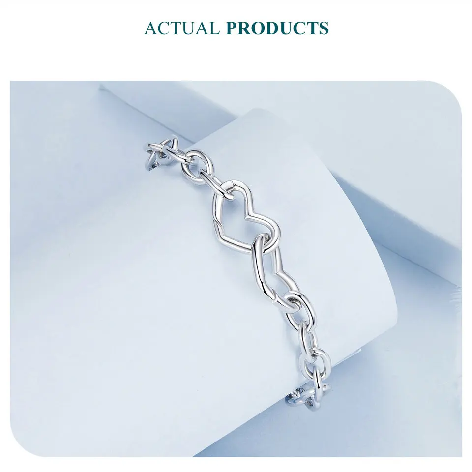 925 Sterling Silver Double Hearts Clasped Bracelets for Women Lady's DIY Pendent Charm Cuff Adjustable Bracelets BSB172