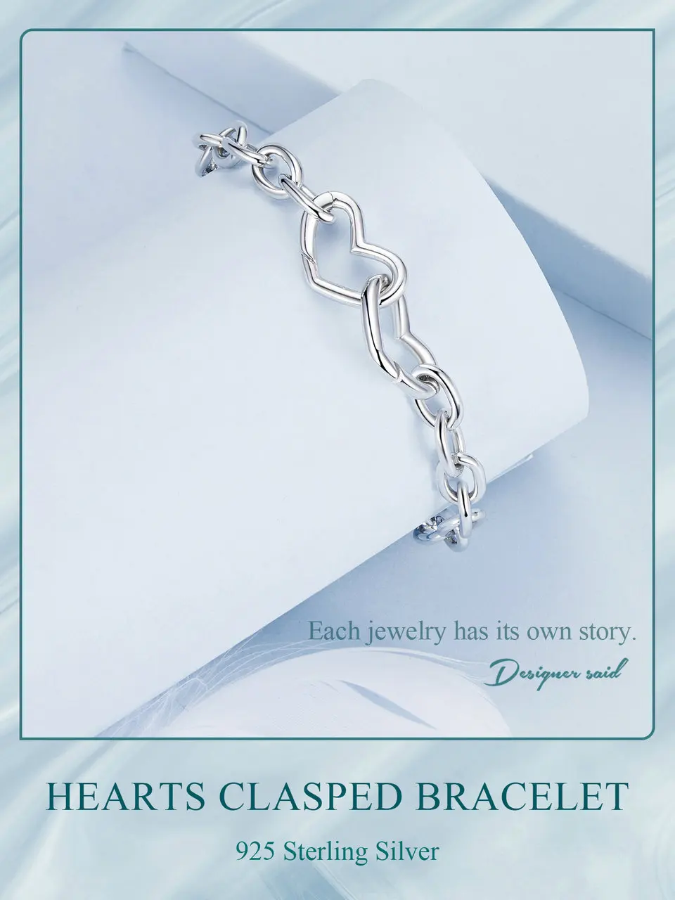 ❤ [Description] The design inspiration of the hearts clasped bracelet originates from love, symbolizing the mutual attraction and interdependence of two hearts. The bracelet is composed of two heart-shaped clasps, symbolizing the close connection of love.
